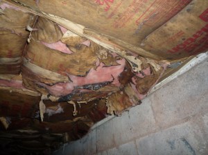 If you’ve got fiberglass in the ceilings of your crawlspaces, there’s a very good chance it’s moldy and falling apart. Fiberglass simply isn’t the right material for this job.
