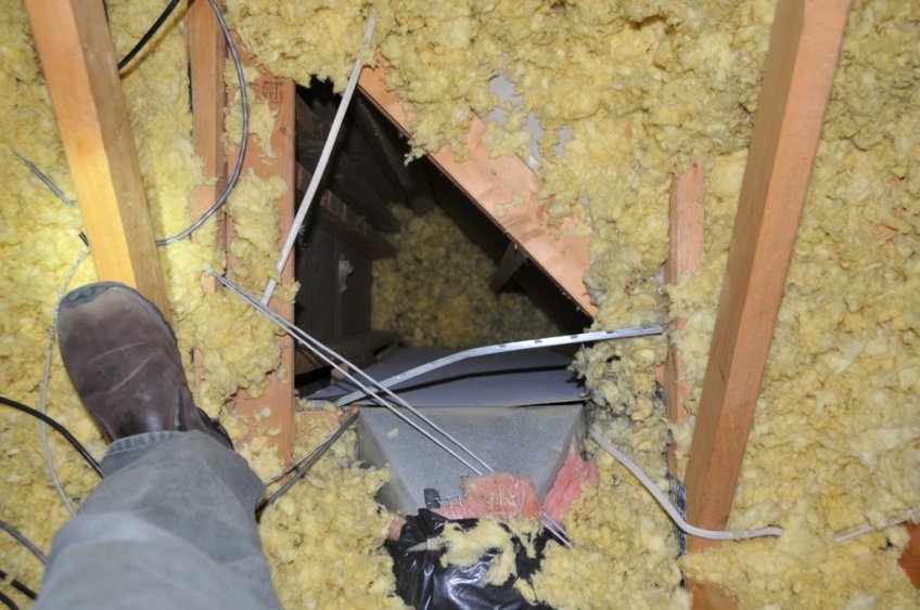 Large duct chase covered with insulation Published January 9, 2012 at 1024 × 680 in What does it mean if your fiberglass insulation is black? Duct chases like this are huge energy holes. Cap and seal them.