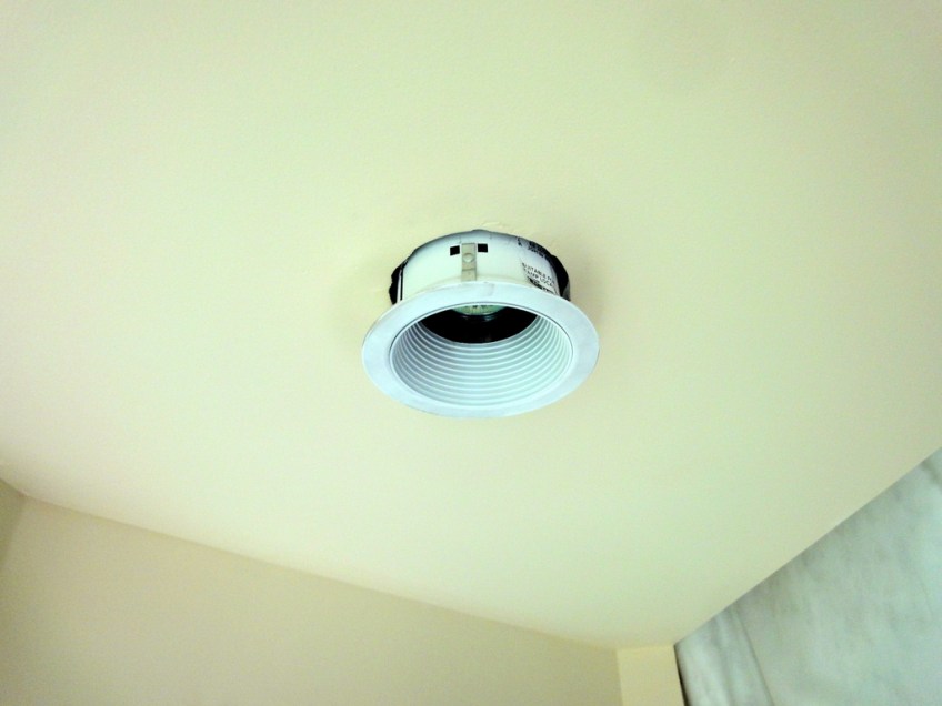 DSC01873 Published March 26, 2011 at 1024 × 768 in What’s the best way to insulate your attic? or How I learned to think like a child Recessed light being installed