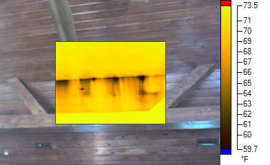 (Photo shows a thermal scan of a ceiling where cold air is leaking in through the gaps – those are the black streaks down the photo)
